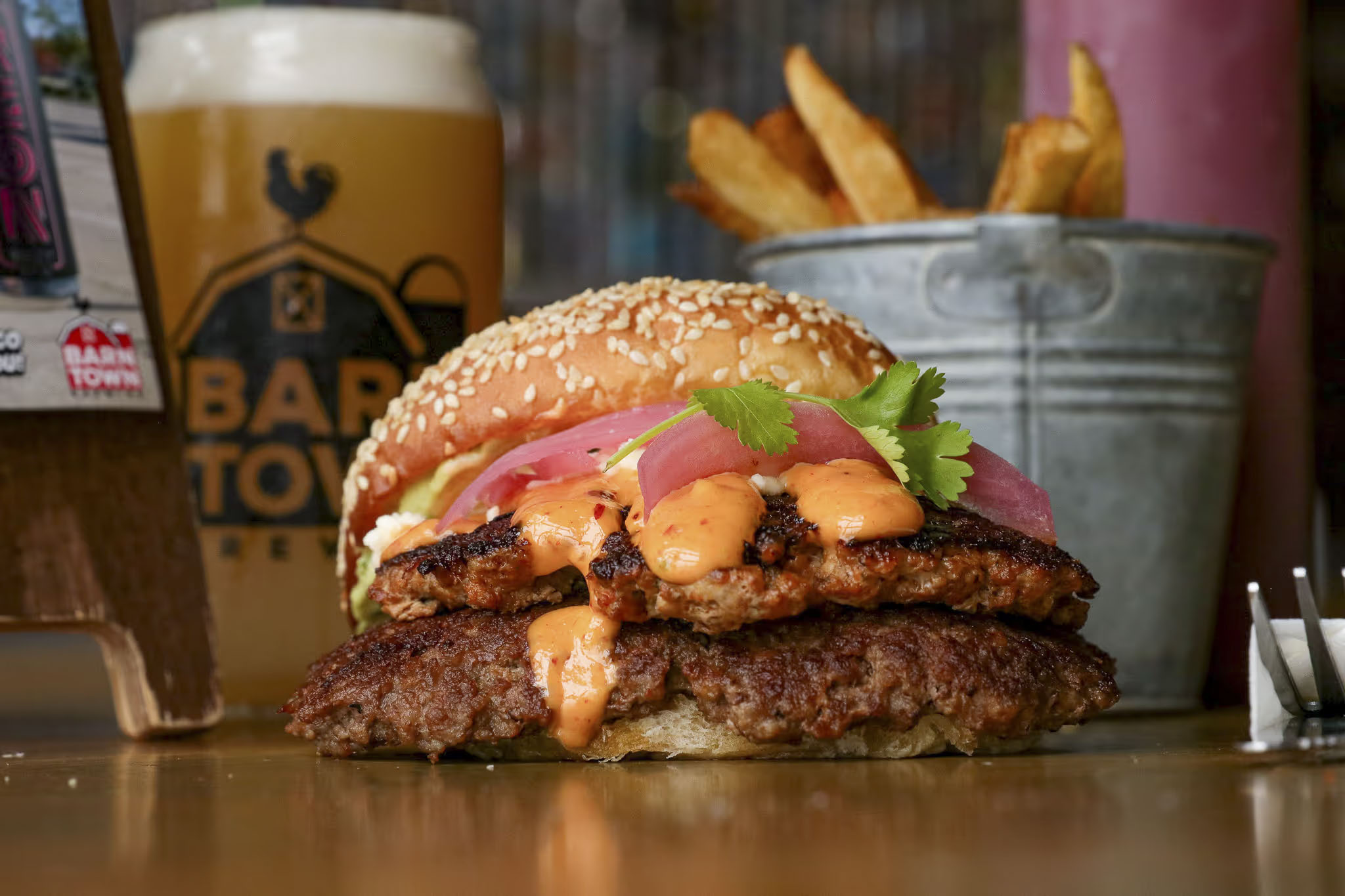 At its core, Barn Town is a brewery—and they take that seriously. Their beer lineup rotates frequently, which means there’s usually something new to try alongside their staple favorites.