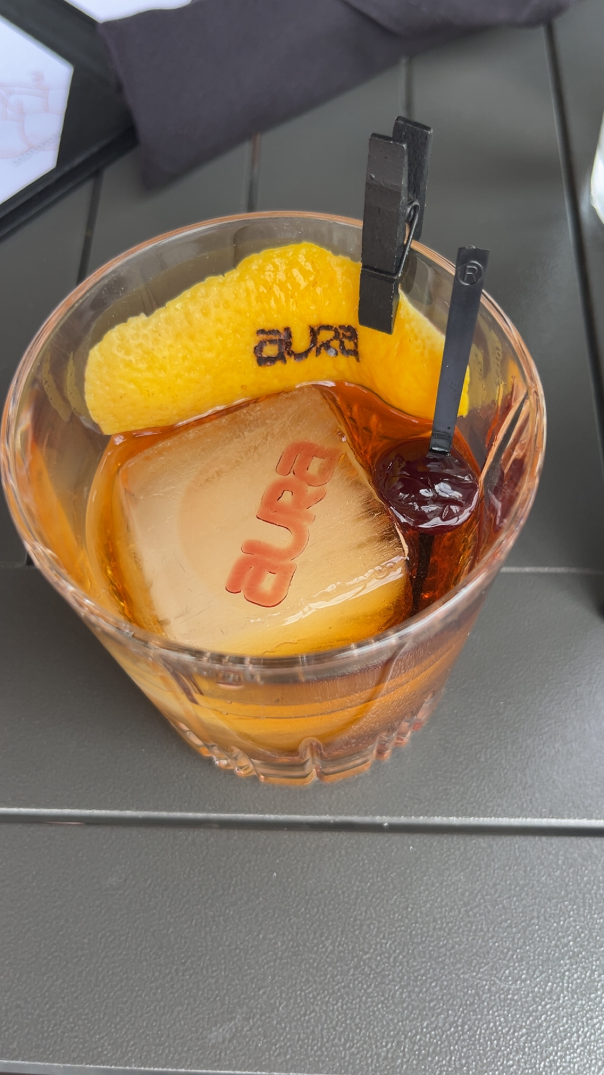 To pair with his meal, he ordered Noah’s Smoked Old Fashioned. It was poured with dramatic flair right at the table, complete with a smoky finish. What made it even more impressive were the details: the orange peel and even the ice cube were stamped with the word AURA — a small but striking touch that elevated the entire experience. And instead of a traditional dessert, I closed the meal with an Espresso Martini — smooth, bold, and just the right amount of sweetness to finish things off.