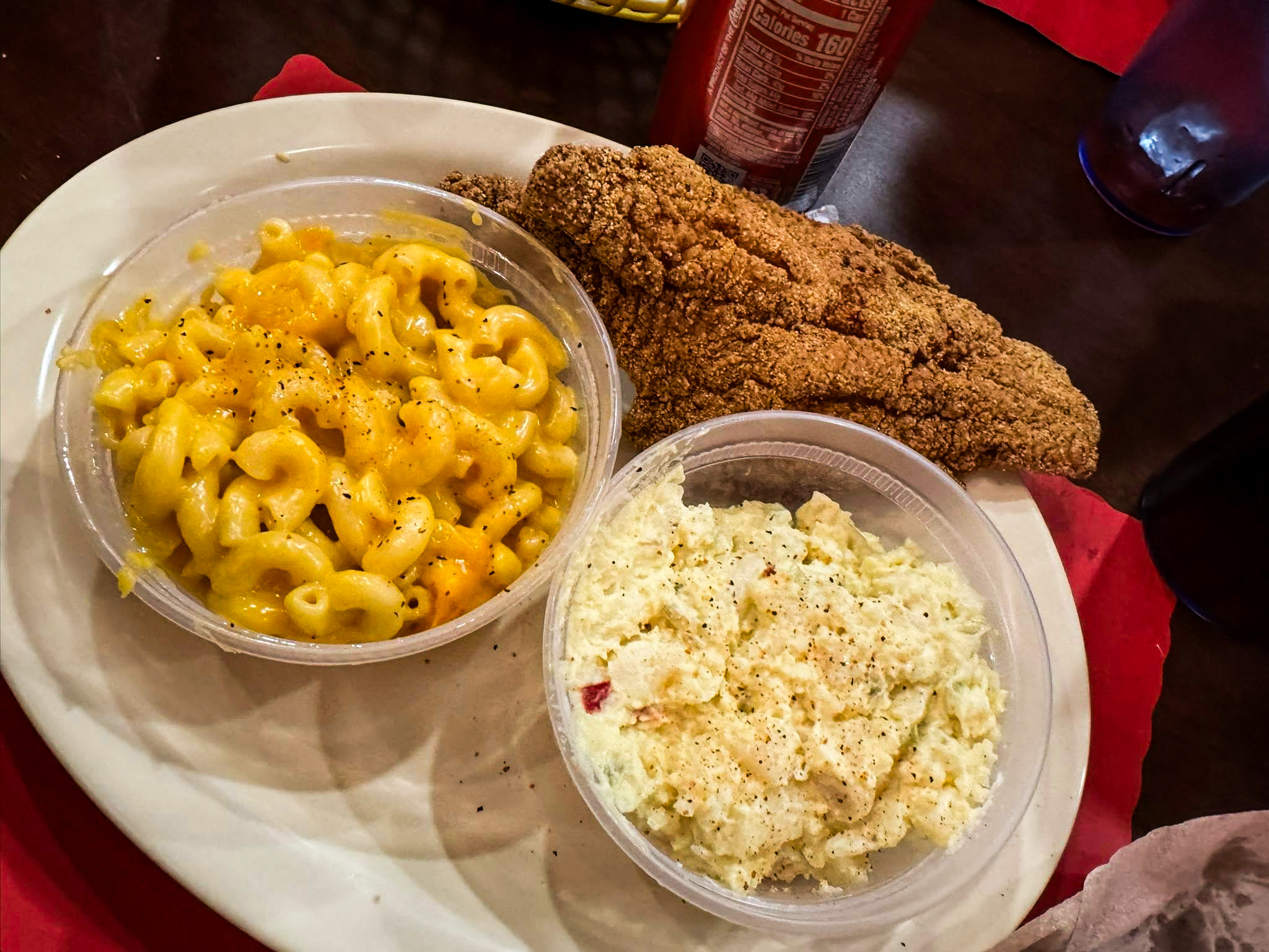 One patron highlighted the unique offerings such as cornbread made on a waffle iron, sweet buns, and fried catfish, recommending diners to "Go there, eat there, waddle out."